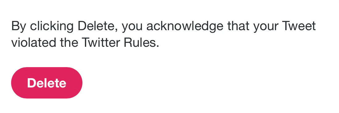Unlocking an account by deleting a tweet Twitter entails assent to having violated Twitter’s terms of service:
